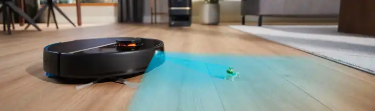 The laser detects walls and large obstacles such as furniture. The robot will find its way around furniture, while reaching deeper into corners and closer to walls so it doesn't miss any areas.