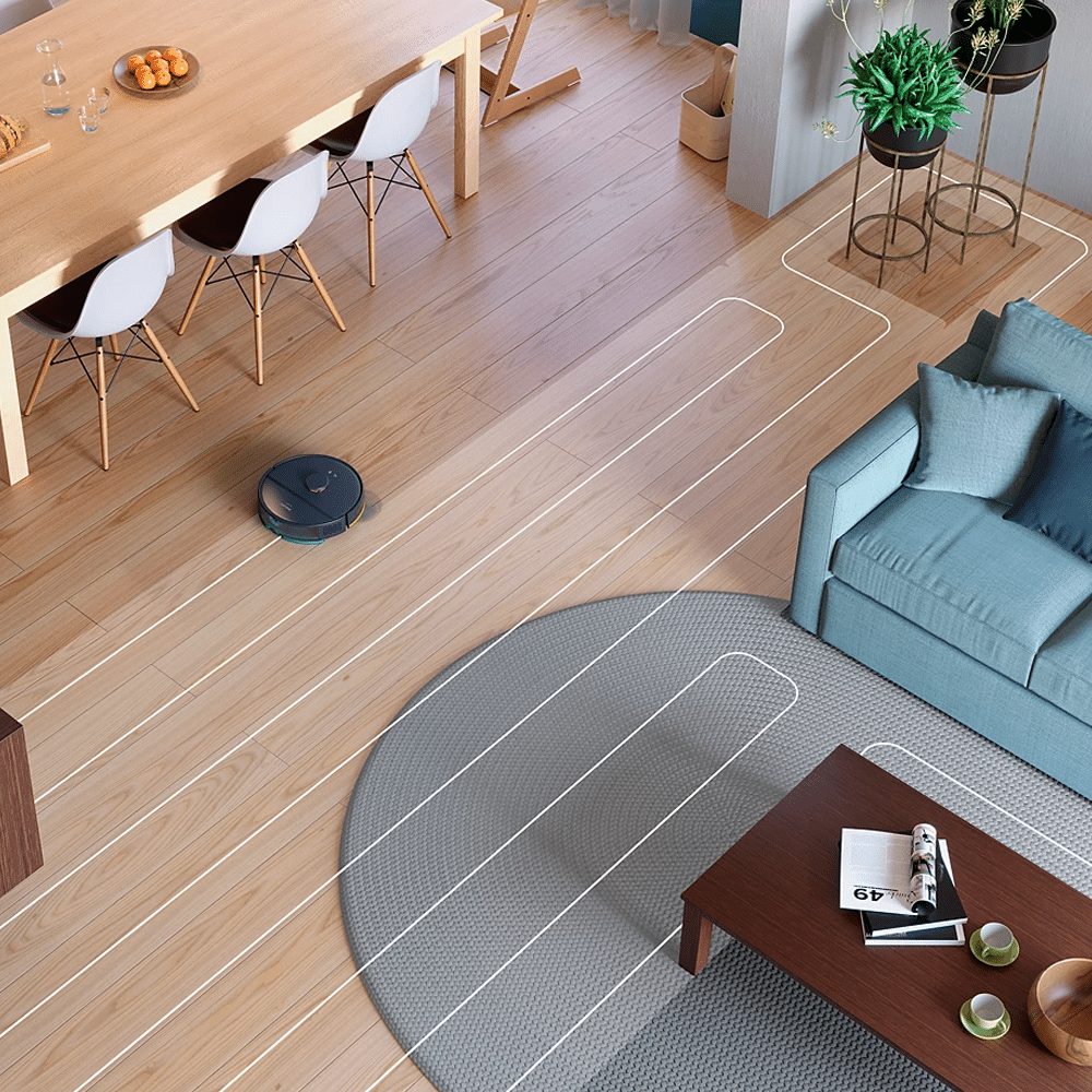 Intelligent algorithms help the robot find the most efficient cleaning path from room to room for fast and efficient cleaning.