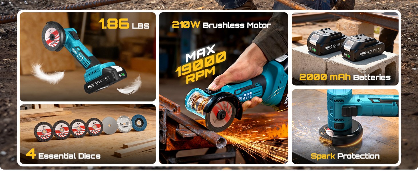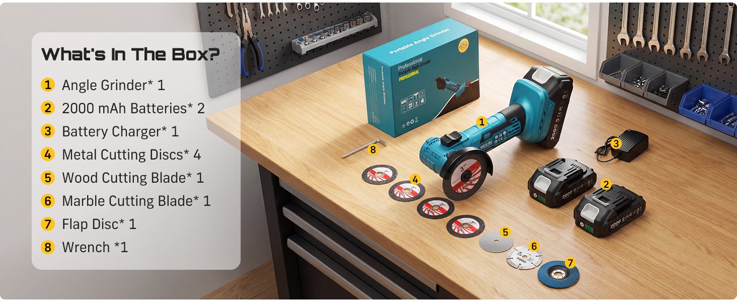 | 1 × SEESII 3-Inch Cordless Mini Angle Grinder |